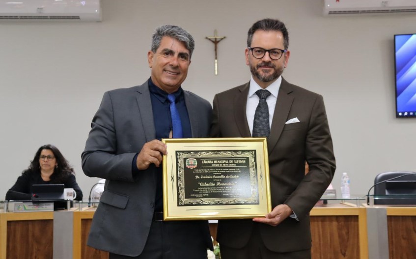 O promotor de Justiça, Frederico Carvalho de Araújo, recebeu o título de cidadão honorário de Alfenas, concedido pela Câmara Municipal. A homenagem foi concedida em uma sessão solene na última quinta-feira.