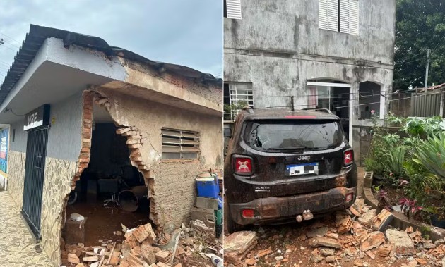 Um estabelecimento e duas residências comercial foram atingidos. Além disso, uma motocicleta foi completamente destruída e um carro ficou severamente danificado. O carro bloqueou a entrada de uma das residências e uma família teve que ficar retida dentro do imóvel até o local ser desbloqueado. Como medida de segurança, foi necessário a demolição de um muro que apresentava risco iminente de queda.