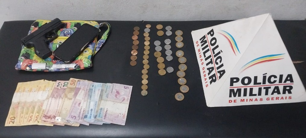 Um dos criminosos foi perseguido e preso em flagrante pela PM. O celular e o dinheiro roubado foram recuperados. Além disso, uma réplica de arma de fogo, utilizada na ação criminosa, foi apreendida.