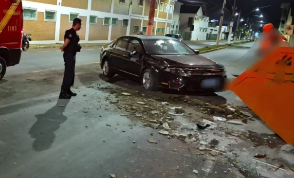 Carro bate em caçamba de entulho na Avenida Jovino Fernandes Salles
