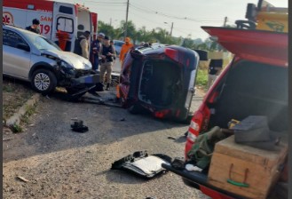 O acidente envolveu uma picape e um veículo modelo Tracker, que capotou lateralmente após a batida. O Corpo de Bombeiros foi acionado e encontrou a motorista do Tracker, uma mulher de 56 anos, presa no interior do veículo. A equipe realizou uma operação de salvamento precisa, estabilizando o carro e removendo a vítima com segurança pelo teto solar, garantindo a proteção de sua cervical.