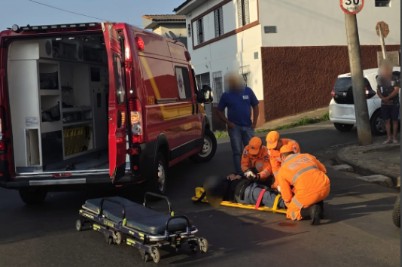 Ao chegarem, os bombeiros encontraram o motociclista, de 38 anos, caído. Ele apresentava suspeita de fratura no tornozelo direito. O homem foi atendido no local, imobilizado e encaminhado para o Hospital Alzira Velano.