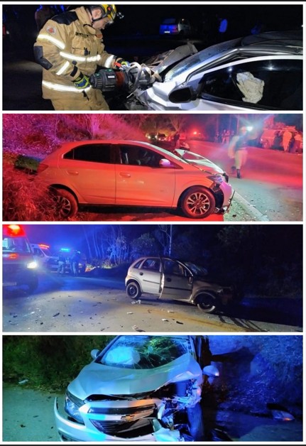 Uma colisão envolvendo três veículos na rodovia MG-179, próximo ao trevo de São João da Mata, resultou na morte de uma mulher e deixou outras seis pessoas feridas na noite de ontem, sábado. O acidente ocorreu por volta das 23h20 no quilômetro 35 da rodovia.