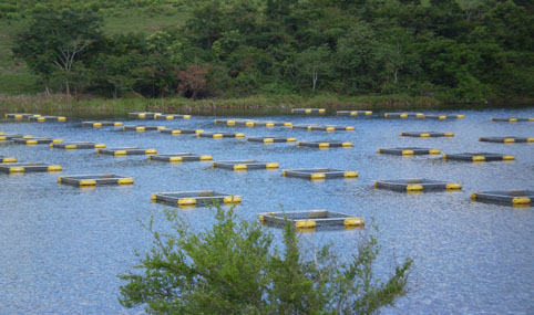 Piscicultura no lago de Furnas