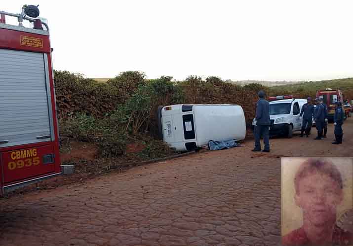 Um acidente provocou a morte de uma pessoa na estrada do Harmonia, zona rural de Alfenas. Uma Kombi, que seguia sentido Alfenas, bateu em um barranco e tombou.