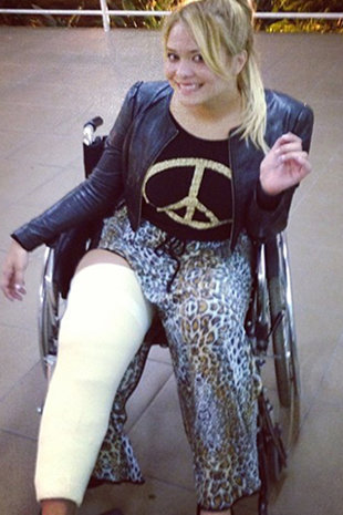 Geisy Arruda se machuca e posa em cadeira de rodas