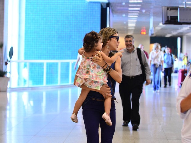 Atriz e a pequena Sofia foram fotografadas no aeroporto Santos Dumont.
