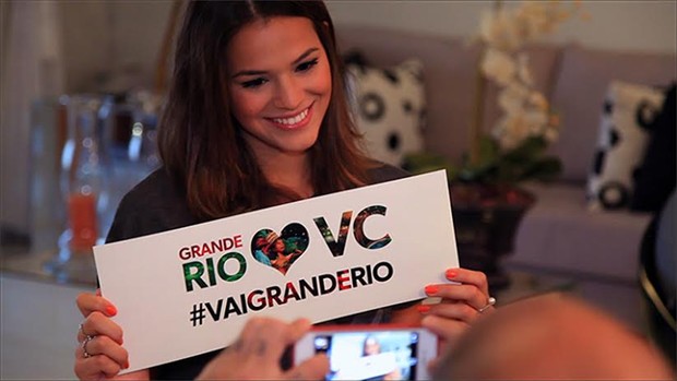 Bruna e outros famosos estão participando da campanha que convida todos os usuários da internet para uma participação virtual durante o desfile da escola de samba. As imagens dos internautas serão exibidas em duas alegorias do enredo que fala sobre os 200 anos da cidade de Maricá.
