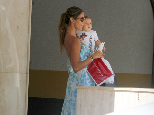 Flávia Sampaio passeia com o pequeno Balder