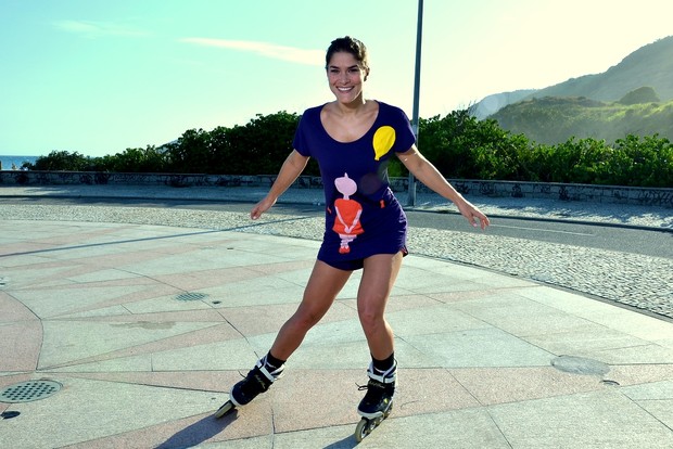 A atriz, que está de volta em "Malhação", posa para o EGO andando de patins, conta como mantém a boa forma e nega crise na relação.