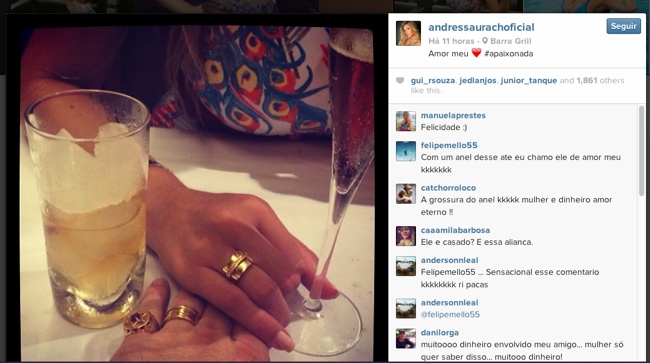 E ainda questionaram se Andressa está saindo com um homem casado, pois o amado da moça usa aliança na mão esquerda.