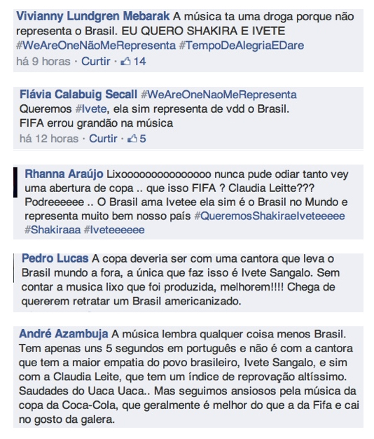 A maioria das pessoas que comentou no Facebook, por exemplo, afirmou que quem representa o Brasil é Ivete Sangalo e não Claudia Leitte.