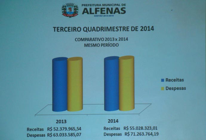 Os dados são referentes ao último quadrimestre de 2014 e a comparação com o mesmo período do ano anterior. Se em 2013, as despesas alcançaram R$ 63 milhões no último quadrimestre daquele ano, em 2014 o valor foi ainda maior: R$ 71,2 milhões.